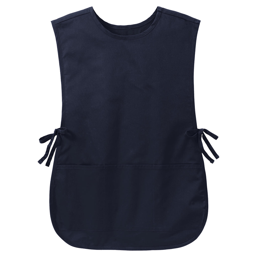 You might not think an apron is an essential piece of workwear"until your first day in a job in where an item like the Port Authority Navy Easy Care Cobbler Apron with Stain Release is worn. Suddenly, they become the quintessential shield against grease, grime, and much, much more. This apron is comfortable and won't feel like it's "in the way." And when you affix your custom logo or corporate logo to the front to create a working uniform, they can be just as good in their appearance as they are at their job.Highlights