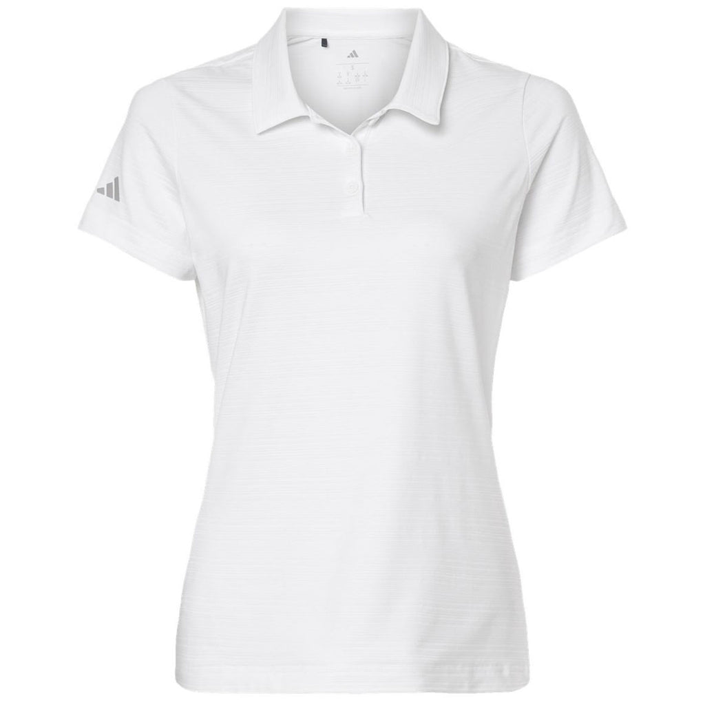 Adidas Women's White Textured Stripe Polo with a corporate logo is the ideal option when it comes to a crisp, clean uniform look for employees. This jacquard textured polo has a self-collar and regular fit to keep you looking and feeling great all day. Great as a uniform, a corporate option, or for special events within the company.This product cannot ship outside of the United States
