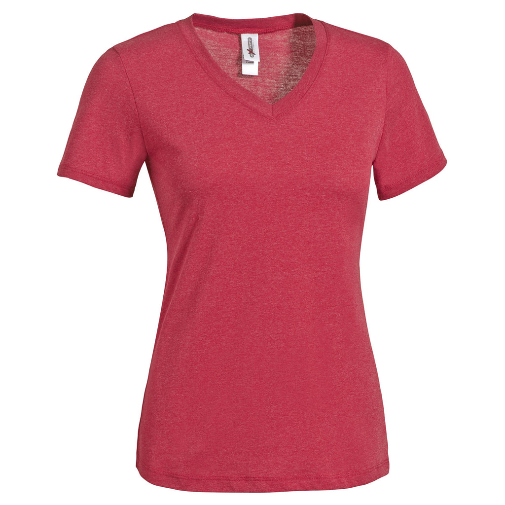 Make this year your most active one, set foot in the gym with this workout essential Expert Women's Dark Heather Red V-Neck Tee. Whether you're looking to don a true athleisure look beyond the gym or wanting to keep it cool and casual in a supersoft top, this breathable and relaxed-fit tee will be your go-to summer staple. No odor-causing bacteria thanks to the antimicrobial, moisture wicking properties. If you're into a blend of athletic and casual wear, look no further than this customizable tee that will flaunt your logo everywhere from the yoga studio to lounging by the beach.The minimum order for this product is 12 pieces.