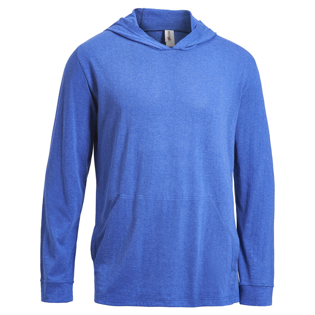Expert Men's Dark Heather Royal Soft Hoodie, made entirely of the soft fabric, is set to be your new go-to for weekends. Crafted from cotton blend fabric feels great all day long. It features long sleeve hood with self-cuff, relaxed fit cut ensures ultimate comfort, and lined with moisture wicking material that makes it most appropriate pick for throwing on to and from the gym. Large kangaroo pocket is roomy enough to stash post-work out snacks. Upgrade your corporate swag by sporting your employees in this customizable hoodie with name and logo of your company.The minimum order for this product is 12 pieces.