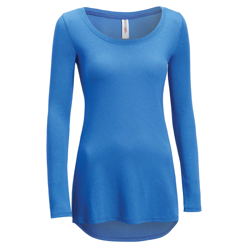 Add motivation to your gym routine with simple yet practical Expert Women's Royal TriTec Long Sleeve Scoop Neck Tee. Made from a soft, micropoly-fused cotton blend, this active wardrobe favorite promises a long-lasting comfort. Long sleeve, scoop neck, feminine contour and drop hem enliven this t-shirt. Its layer-friendly form makes it a key to unlock countless sartorial opportunities. Equipped with moisture-wicking technology to keep sweat at bay. Customize this high street women's fitness top with a custom logo of your event or company to create uniformity among employees, customers or event participants.The minimum order for this product is 12 pieces.