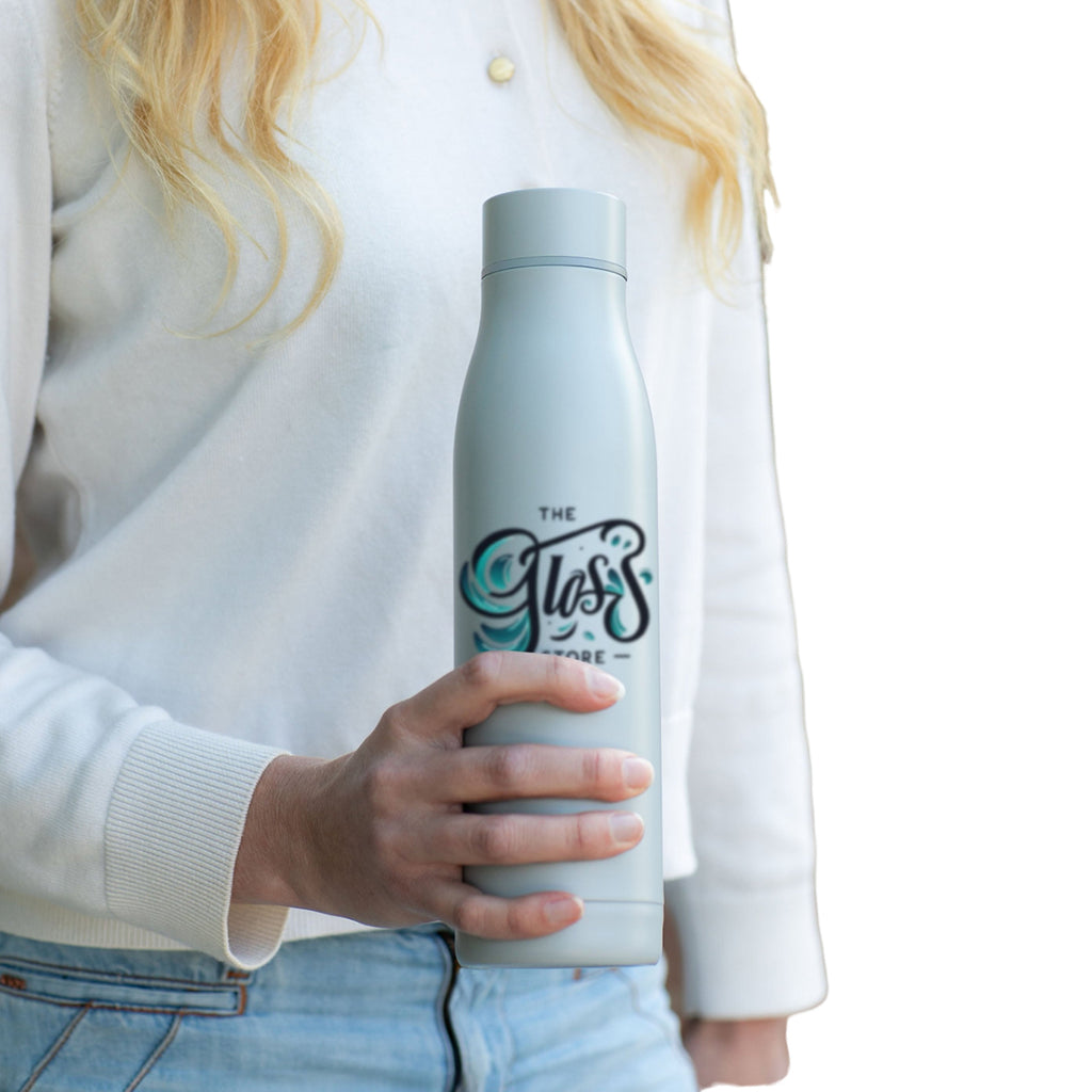 Get creative with a custom Rupt Silver Acuara 600 ml Double Wall Bottle stainless steel bottle with a stainless steel cap. The laser-etched design will pop on this gorgeous bottle, which arrives in a lovely package. It can then be used as a cord organizer to keep your tech in order. Perfect as an employee gift or to share with friends and family for the holidays, it's also perfect for storing your tech.The minimum order for this product is 1 piece.