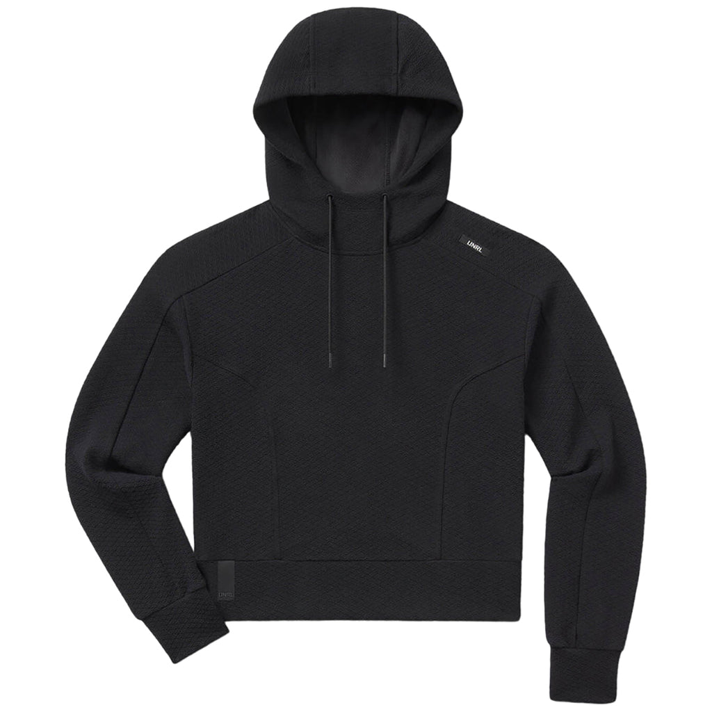 With custom embroidery, UNRL Women's Black Elevation Hoodie creates a new level of comfort for travel, lounging, or working out. The midweight hoodie has a fitted waist, 4-way stretch, and thumb holes to enjoy a clean look no matter what your day may hold or what activity level you need to take on. Give as a gift or add to your apparel line.