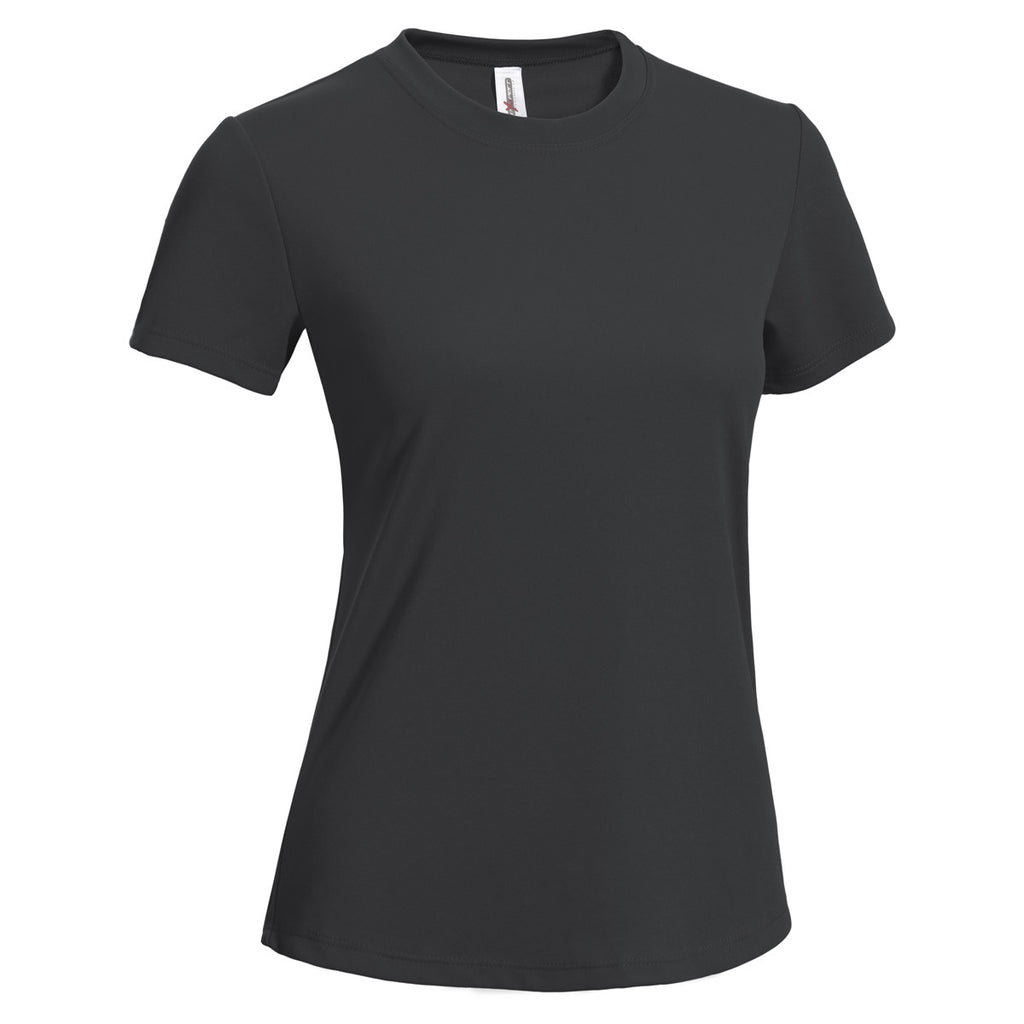 Expert Women's Black Short Sleeve Tee features short sleeves, crew neck and crafted from 100% microfiber polyester, available in a range of hues. Perfect for everyday wear or the most intense workouts, this tee comes in a relaxed fit in feminine contoured design. Soft, breathable fabric expertly wicks sweat to keep you as dry as possible. Treated with BodyFreshe to eliminate odors and inhibit odor-causing bacteria. Promote a healthy and active lifestyle with these workout-ready shirts, ready to sport custom logo imprint of your company.