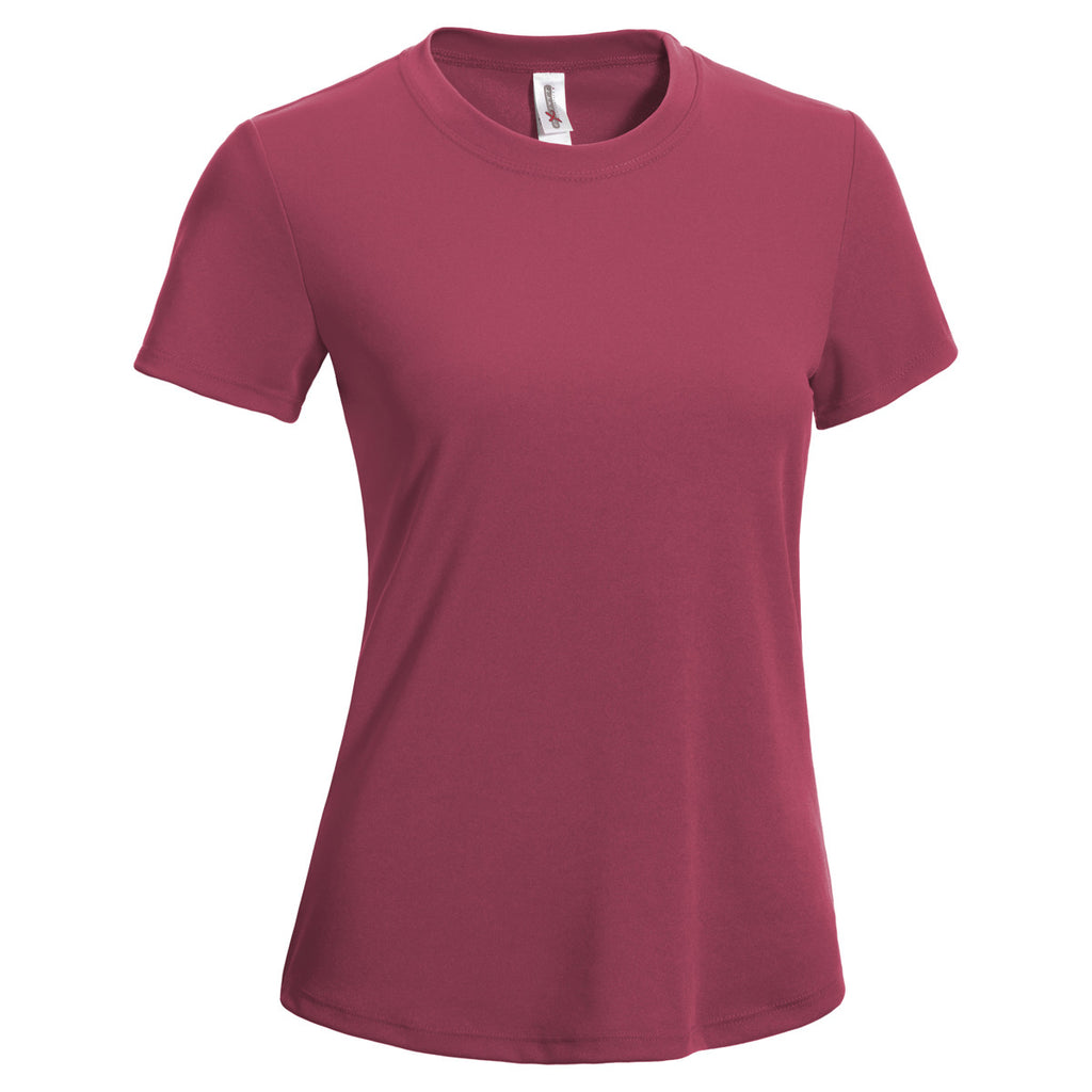 Expert Women's Cardinal Short Sleeve Tee features short sleeves, crew neck and crafted from 100% microfiber polyester, available in a range of hues. Perfect for everyday wear or the most intense workouts, this tee comes in a relaxed fit in feminine contoured design. Soft, breathable fabric expertly wicks sweat to keep you as dry as possible. Treated with BodyFreshe to eliminate odors and inhibit odor-causing bacteria. Promote a healthy and active lifestyle with these workout-ready shirts, ready to sport custom logo imprint of your company.