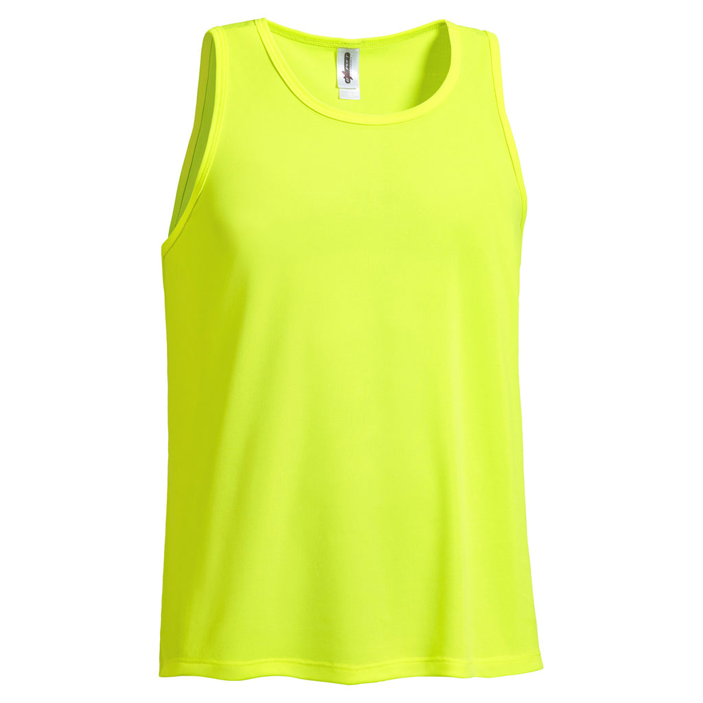Move freely and comfortably in any workout program with Expert Men's Safety Yellow Workout Tech tank top featuring breathable mesh for letting out excess heat for cool comfort while working out. Offset side seams minimize the chances of chafing and irritation while athletic fit ensures freedom of movement during workout regimen. Crafted from 100% microfiber polyester px maX. The fabric is BodyFreshe anti-bacterial technology and wicks sweat quickly. Flaunt your brand pride with this men's performance tank top! Our advanced customization service lets you customize this top with ultra-fine quality logo imprint of your company.The minimum order for this product is 12 pieces.