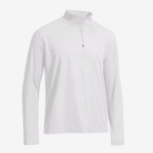 Here's to Expert Men's White Quarter Zip Training that keeps pace on your run no matter how harsh the factors are! Add this long sleeve pullover/shirt with zipper flap into your workout gear arsenal that wicks away sweat so you won't overheat. Self-fabric neck tape prevents chafing and irritation. Reflective tape enhances night visibility. Find the motivation you need to stay active and healthy with Expert Men's White Quarter Zip Training Pullover, it is customizable with your logo imprint and is perfect for corporate giveaway, promotional or merchandising uses.The minimum order for this product is 12 pieces.