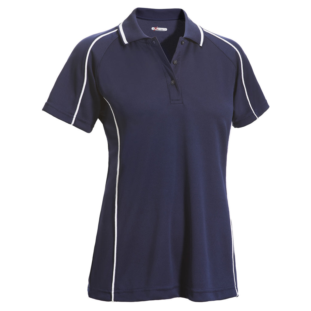 Expert Women's Navy/White Malibu Polo is crafted from moisture-wicking, 100% microfiber polyester fabric that keeps you dry during a training session. It's armed with BodyFreshe anti-bacterial tech to keep garment fresher for longer. Relaxed fit provides maximum comfort and optimal mobility to resonate with your active lifestyle. Tuck it into a skirt or a pair of shorts for a chic, performance-ready silhouette. Customize this women's polo with a logo for your company's female associates, employees or clients or give it away on your next corporate branding campaign to promote a healthy and active lifestyle.The minimum order for this product is 12 pieces.