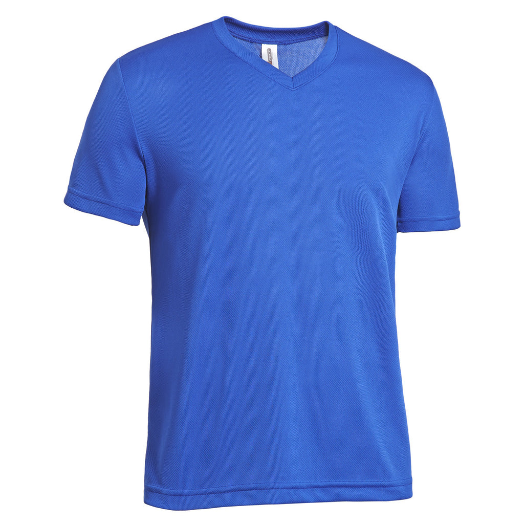 Made with workout junkies in mind, the Expert's Expert Men's Royal V-Neck Tec Tee is an all-around winner that provides you a classic silhouette in the relaxed V-neck. Crafted from 100% microfiber polyester oXy mesh. This performance tee is engineered with BodyFreshe odor-banishing treatment that eliminates odors. Sweat-wicking fibers keep you dry and cool. Make your brand stand out with men's custom v-neck t-shirt designed for an active lifestyle. Custom t-shirt with your company's logo imprint is a popular giveaway item for brands, organizations, and event sponsors.The minimum order for this product is 12 pieces.