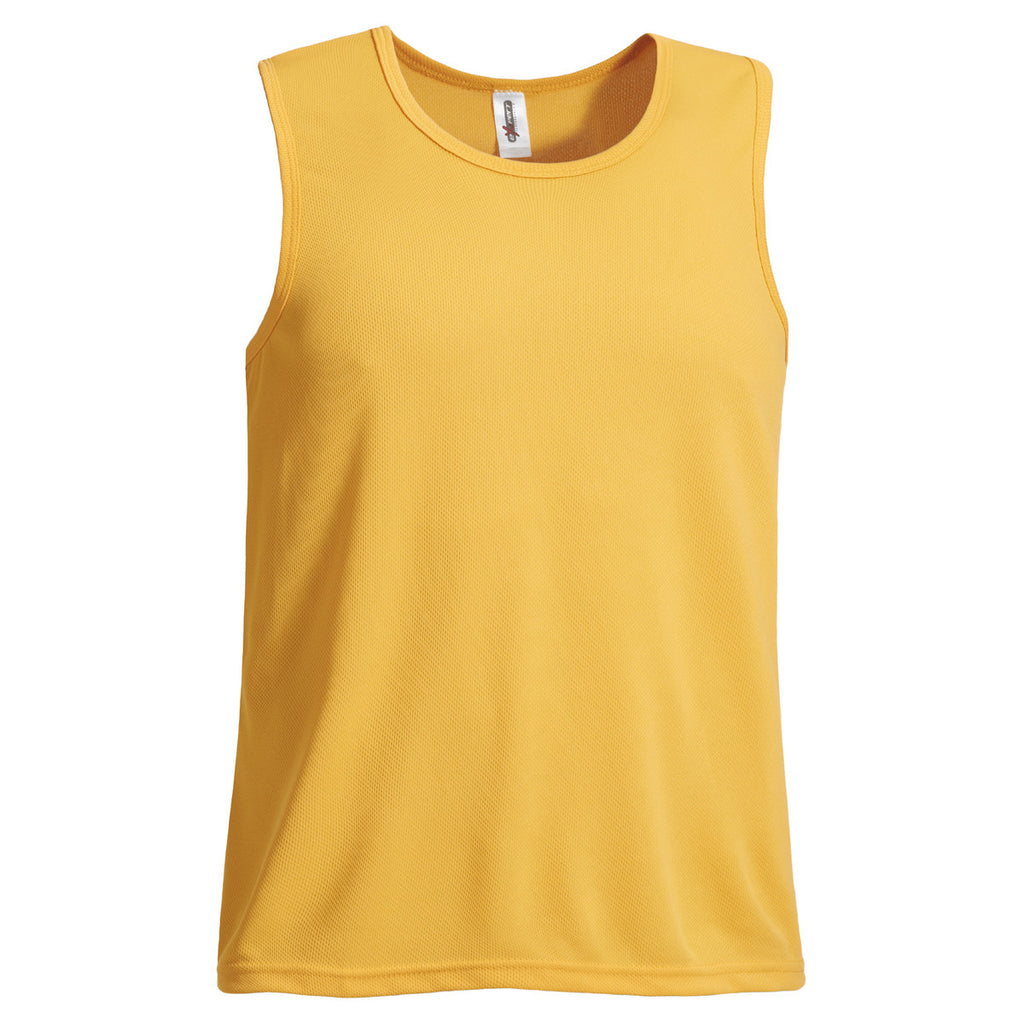 Expert's Expert Men's Gold Singlet flaunts a laid-back form/silhouette that liberates your guns from the shackles of a regular t-shirt. Self-fabric binding at neck and armhole guarantees a chafe-free comfort. Relaxed fit assures freedom and mobility. BodyFreshe anti-bacterial treatment keeps the singlet fresher for longer by curbing the growth of bacteria. Moisture-wicking properties will deflect any sweat that develops as training gains momentum. Order custom singlets for your next event and help your clients stay active with this men's tank featuring your logo and let the world know your company is for a healthy world!The minimum order for this product is 12 pieces.