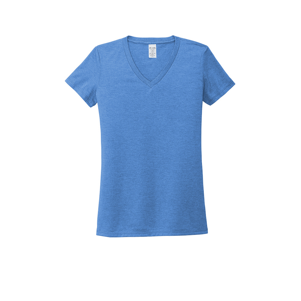 Add screen print to the Allmade Women's Azure Blue Tri-Blend V-Neck Tee for a sustainable clothing option that is eco-friendly and great to wear. The crazy-soft sustainable tee is made from recycled materials with a V-neck design that is flattering and loose fitting. The rib knit neck is perfect for layering or wearing alone with a custom logo that will get your noticed. Perfect for employee apparel with a company logo or as a custom gift to those you appreciate the most in life.