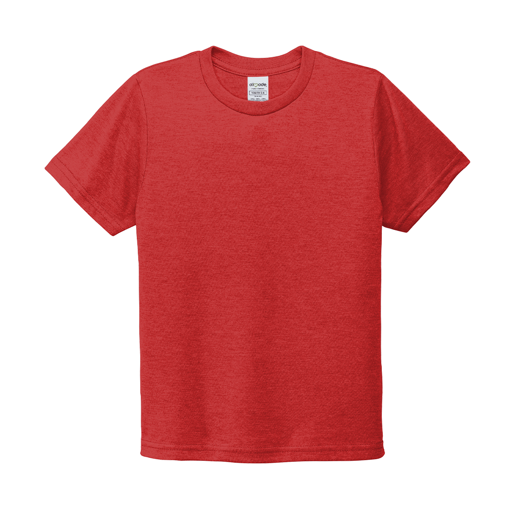Design a screen print for the Allmade Youth Rise Up Red Tri-Blend Tee to create a unique look for your team or organization. The simple recycled apparel is not only great to wear, but good for the environment. Made of sustainable materials that are the equivalent to up to six recycled plastic water bottles. This super soft tee is perfect for youth as they play their hardest each day. Add a custom logo to add to your sustainable clothing line in shops or simply add to your own wardrobe.