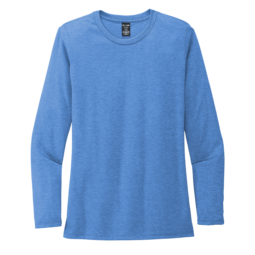 Add screen print to the Allmade Women's Azure Blue Tri-Blend Long Sleeve Tee for a look that everyone can enjoy. Your custom logo will appear on this piece of sustainable clothing that is durable and fashion friendly. Add a company logo to use as employee gifts or uniform pieces in some industries. Easy to wear alone or layer when the weather is cooler, this long sleeve tee should be welcomed into every wardrobe. Recycled apparel is not only durable, but fashion forward while saving the earth. Each tee uses material the equivalent of up to six recycled plastic bottles.