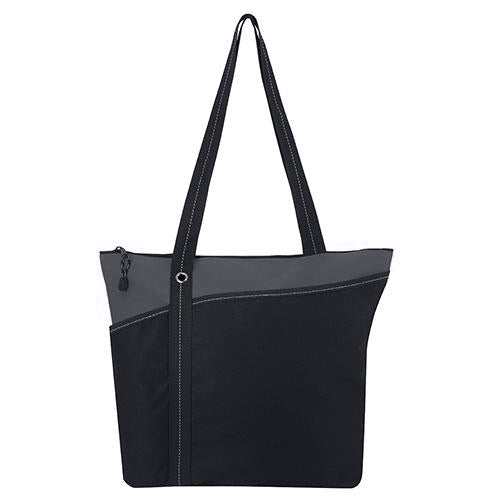Stuff this Atchison Charcoal Annie Tote with swag goodies at your upcoming corporate meeting or seminar! A perfect alternative to plastic bags, this reusable tote bag can be customized with a logo or company name for conventions, trade shows, events, festival and more. Highlights include zippered main compartment, front slip pockets and shoulder-length handles.