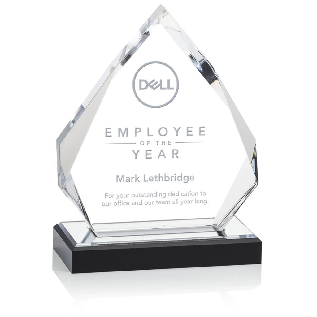 The St. Regis Silver Beckenham Award 5.25" x 6.75" with Standard Base - Laser Engraved with a custom or corporate logo is a wonderful way to recognize a special achievement or goal. The gorgeous ebony base with a golden reflective top radiates gold through the interchanging facets toward the peak. Perfect for employment anniversaries, outstanding service, and top marks.