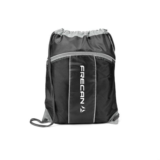 - 210D polyester, two tone mesh and nylon drawstring bag with front zippered pocket