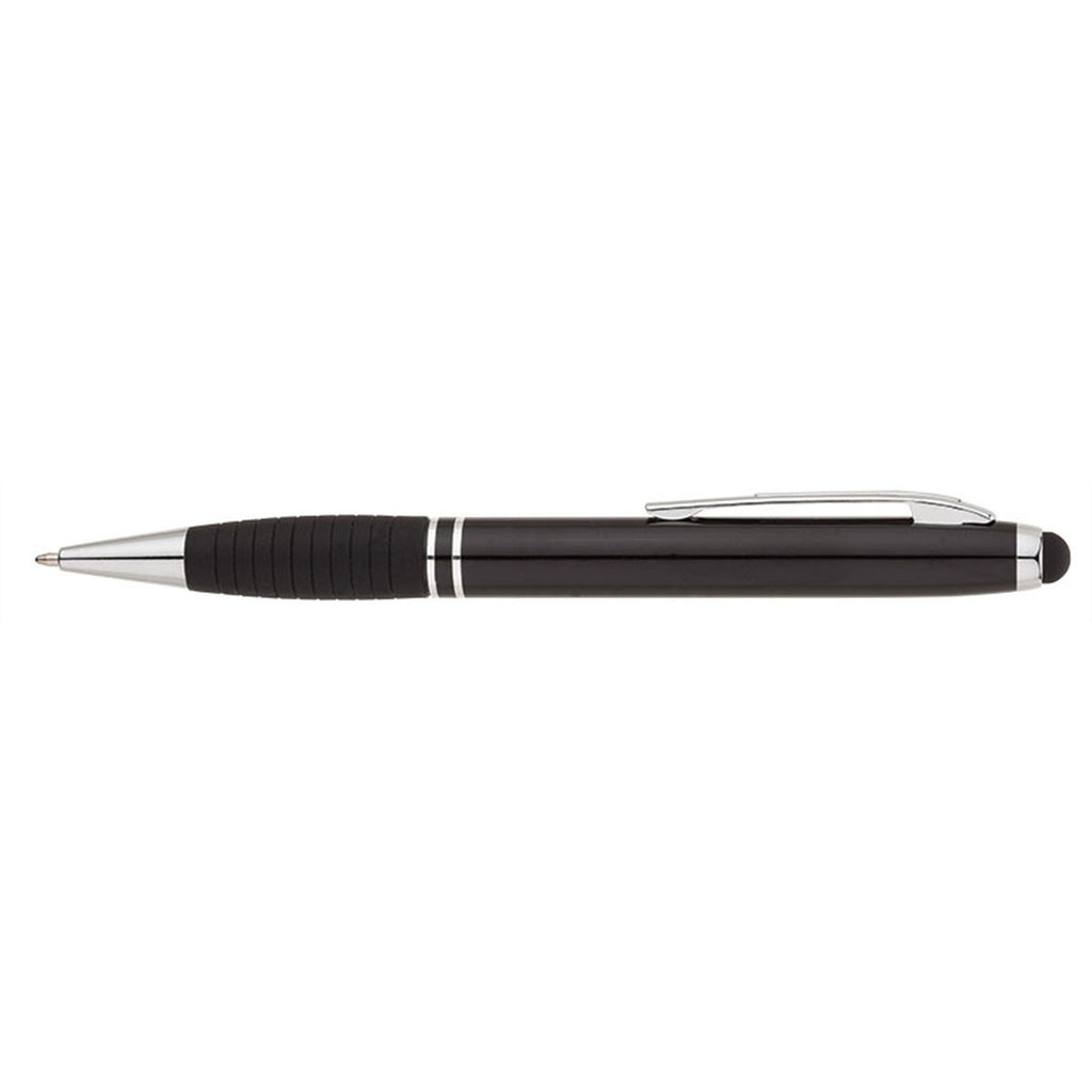 Record your next noble idea with Valumark Black Vivid Ballpoint Pen/Stylus featuring a twist-action mechanism for solid strokes and rich ink. It has a conductive stylus you can use on your touch-screen devices. Impress your employees and clients with this custom conductor pen imprinted with your company logo.