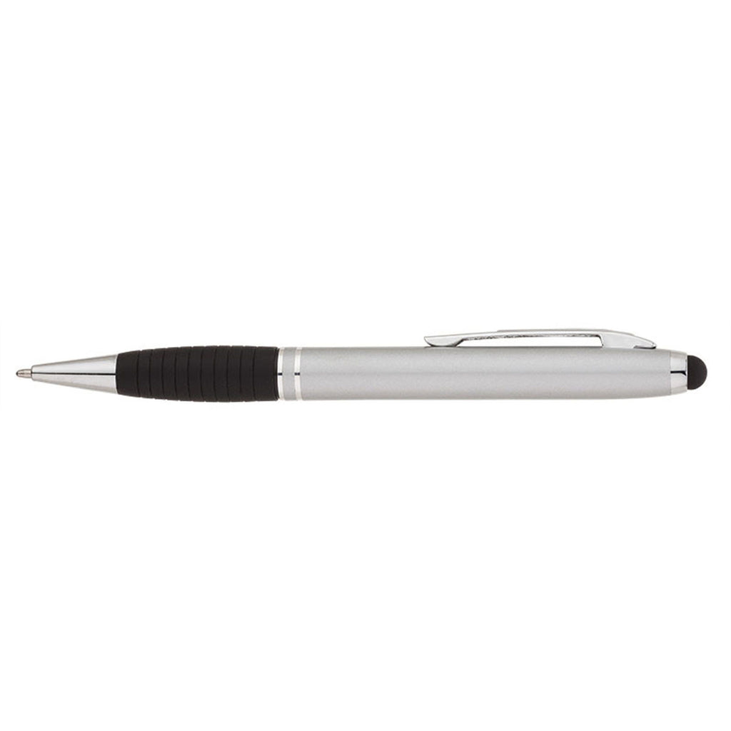 Record your next noble idea with Valumark Silver Vivid Ballpoint Pen/Stylus featuring a twist-action mechanism for solid strokes and rich ink. It has a conductive stylus you can use on your touch-screen devices. Impress your employees and clients with this custom conductor pen imprinted with your company logo.