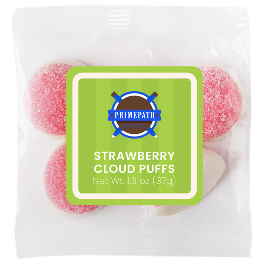 SugarSpot Clear Strawberry Cloud Puffs: Taster Packet with a custom logo is perfect for the office, school, church, or anywhere in between. Having snacks available keeps people happy while you share your thoughts and ideas in whatever environment you are in. These part gummy part marshmallow puffs are filled with flavor. Order today.