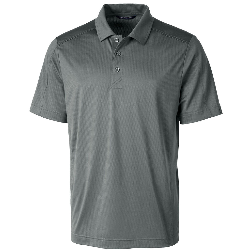 Design a custom logo for the Cutter & Buck Men's Elemental Grey Tall Prospect Polo for an upscale look that is great for work and play. The textured stretch polo is great for those who are taller or carrying a bit of extra weight, whether hitting balls at the driving range or working long hours at the office. A company logo will pop on this polo if used as a uniform. Place an order today.Highlights