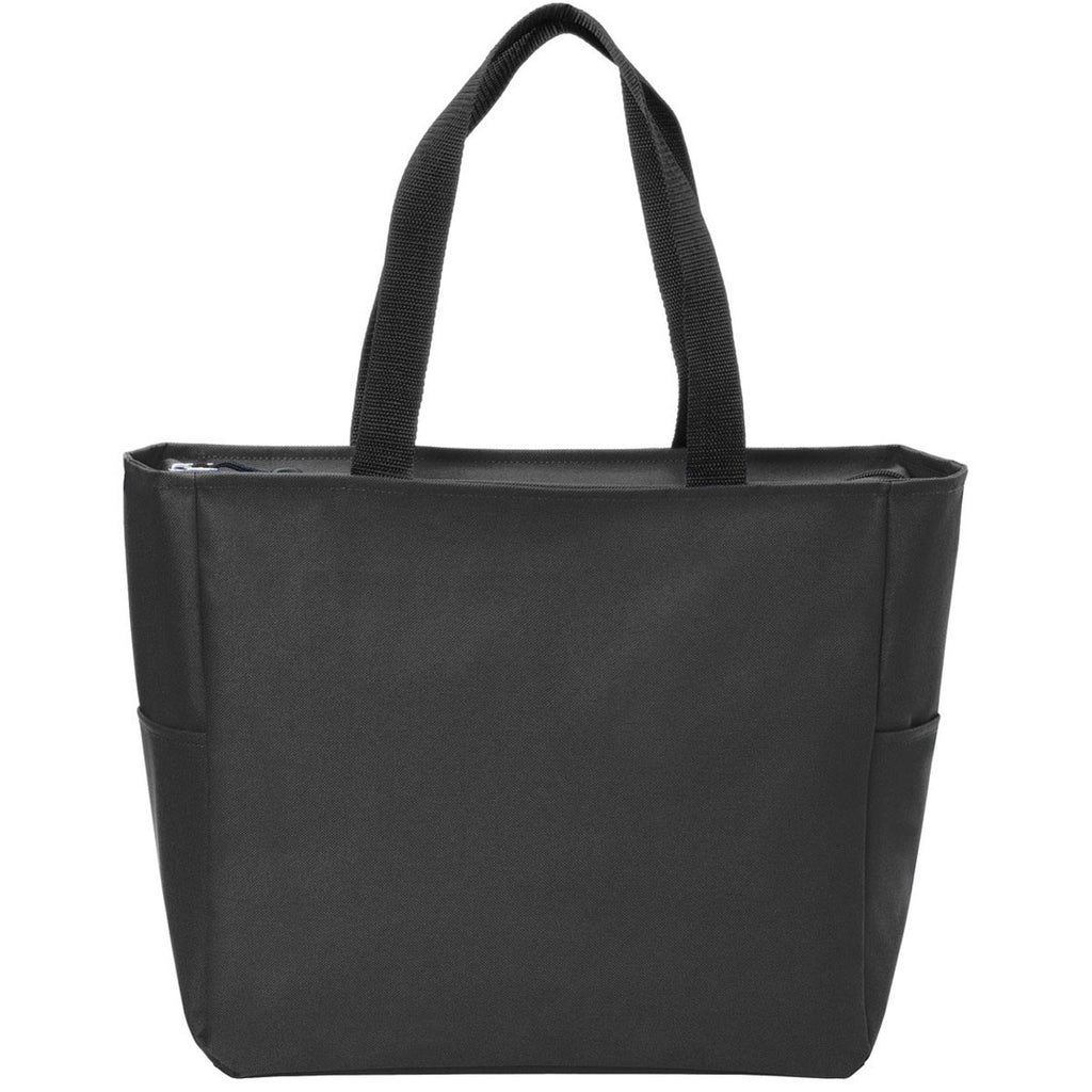 Logoed corporate accessories provide you with a cost effective way to get the word out about your company. However, no other corporate accessory makes more impact on your target market than the impact made by Port Authority Black Essential Zip Tote. The corporate accessories include over-the-shoulder length web handles for carrying heavy loads through crowded office corridors. Two end pockets store all of your electronic devices. The 600-denier polyester canvas absorbs the worst punishment, as well as prevents rips and tears from prematurely ending the lifespan of the totes. Unlike most totes, Port Authority totes zip up the main compartment to protect your most important business documents.Highlights