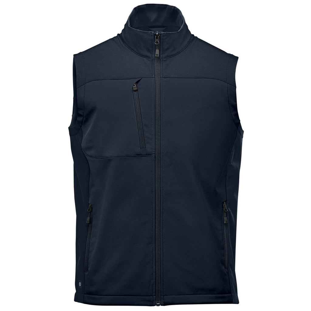 Stormtech Men's Navy/Navy Cascades Softshell Vest with a corporate logo is a fun and simple way to create employee apparel that is easy to wear and looks professional. Ideal for salespeople, those who work in customer homes, or for special events. Combining wet weather defense with warmth makes this a fun vest to wear as you enjoy the outdoors.Corresponding Women's Style: Stormtech Women's Navy/Navy Cascades Softshell Vest