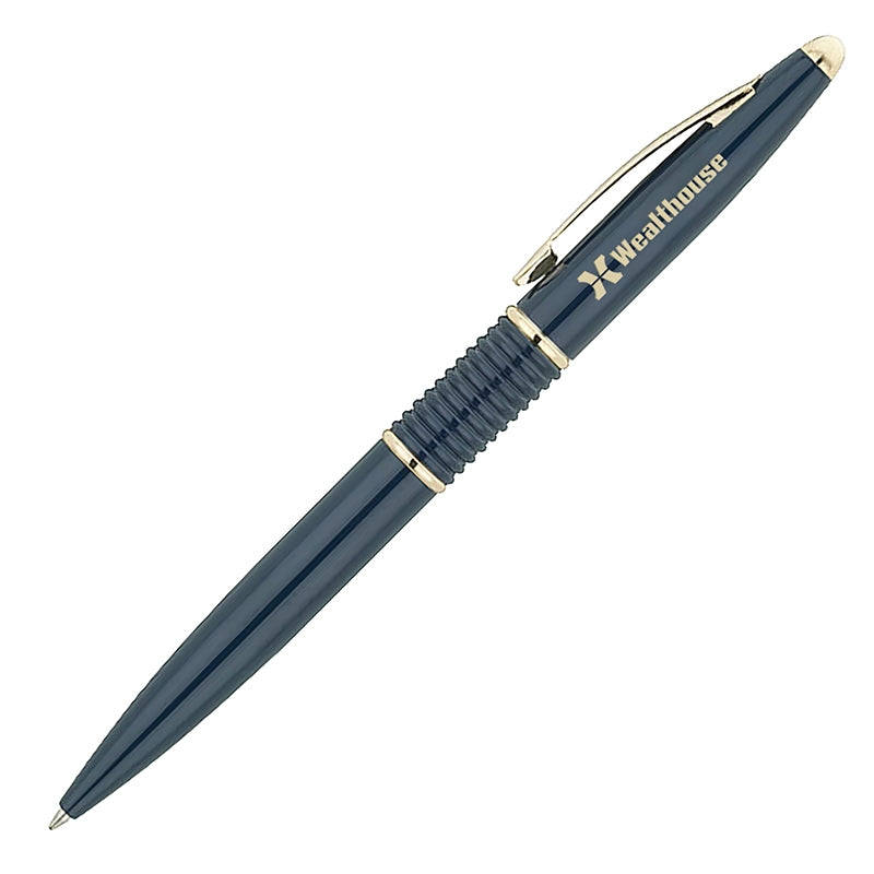 It doesn't get more classic than this stylish ballpoint pen! This twist-action Pasado Logomark Blue Pen features ribbed texture and gilded accents. By having your logo on the customized version of this ballpoint pen, it will be a perfect present that people will use over and over again.