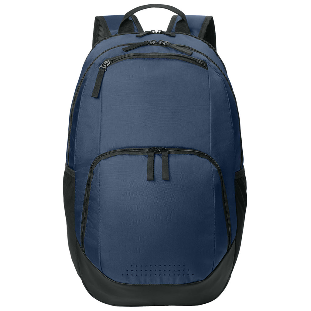 Sport-Tek True Navy Rec Backpack with a custom logo is ideal for work or school. This backpack has a dedicated laptop compartment, padded back, and air vent shoe or ball compartment to keep you organized for a full schedule. Side mesh pockets are great for your phone or water bottle, so you are always prepared.Highlights