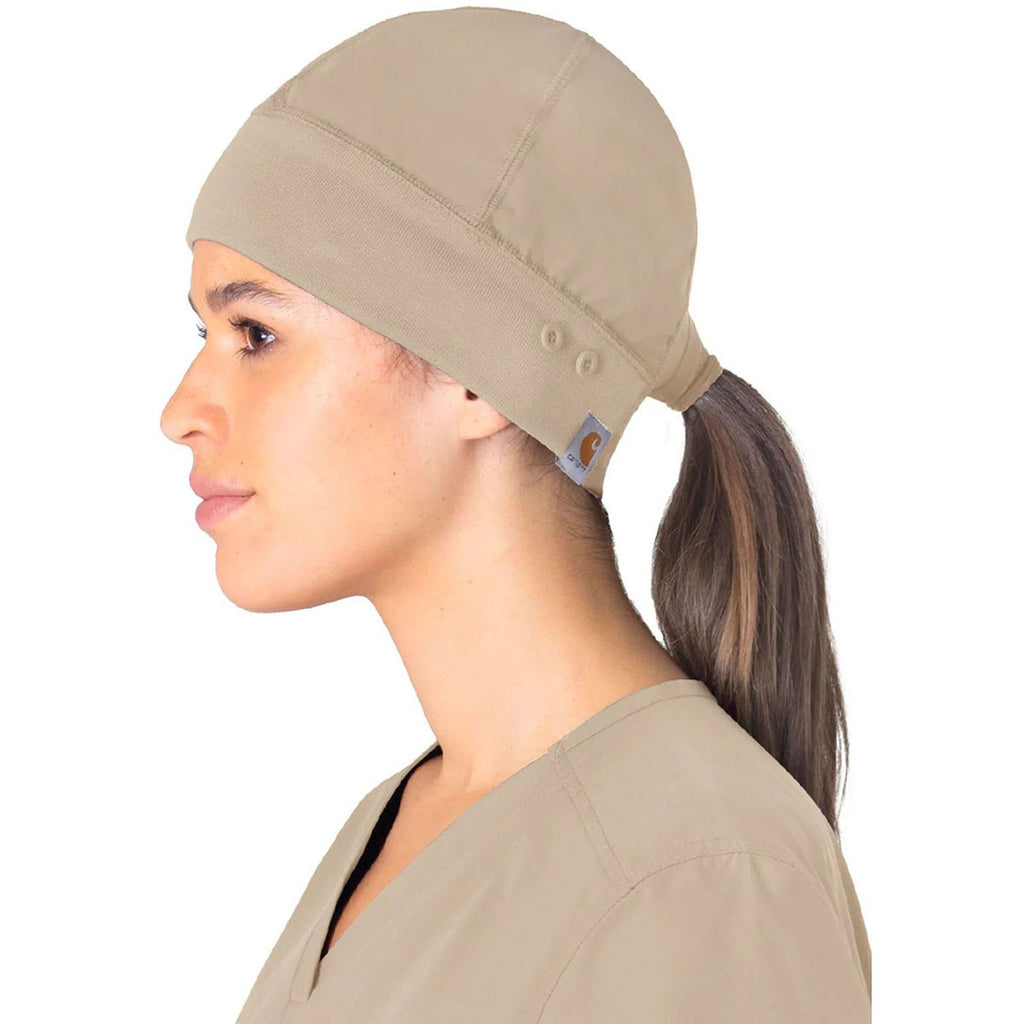 Create a custom design for the Carhartt Unisex Khaki Modern Fit Scrub Cap Beanie with a back opening for long hair. This beanie wicks sweat and dries quickly, so you are comfortable throughout every procedure, and the side button placement offers two options for mask connection. Great at large medical centers to showcase your brand.