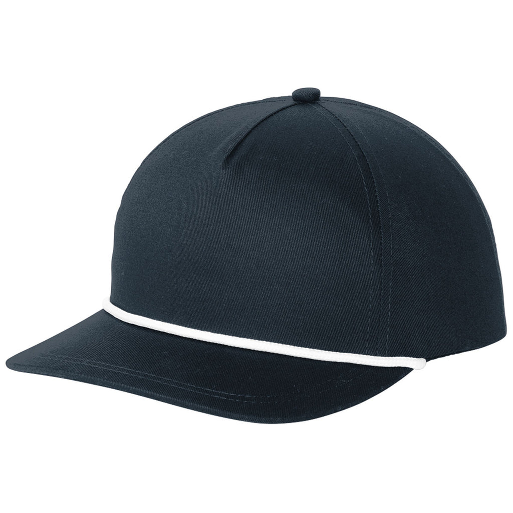 The Port Authority Navy/ White Snapback Five-Panel Rope Cap is a classic structured cap with just a touch of vintage-inspired style. This adjustable hat's minimalist design will make sure your company's custom logo always takes center stage, while the contrast rope detail adds the perfect amount of visual impact.