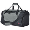 Make weekend trips simple with custom embroidery on the Champion Adult Blue/Black Core Duffel. Made of 100% polyester, this mid-sized duffel has plenty of room for overnight essentials. The removable shoulder strap makes this easy to carry or store overhead while travelling. Add a company logo to give these as employee gifts or custom gifts at corporate retreats and trade shows. A separate shoe pocket and external zip pocket adds extra storage for this simple duffel that really does it all. Add a team logo to use for out of town events and gear storage.