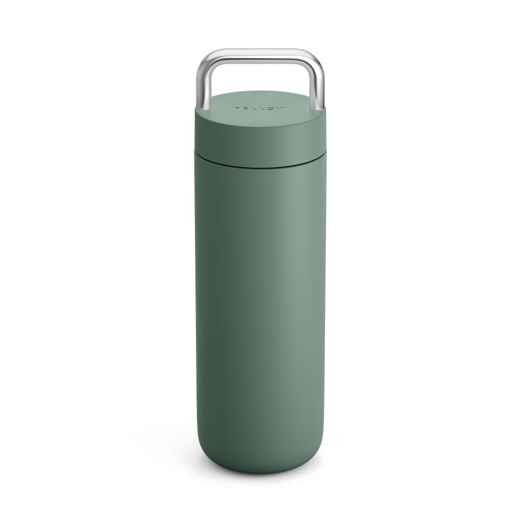 Fellow Smoke Green Carter Carry Mug 20 ozAdd a corporate logo to the Carter Carry Water Bottle to create a great gift or product for your company. This is a minimalist water bottle for on-the-go hydration. The screw on top keeps your drink at the right temperature, and an elegant metal handle makes it easy to carry. Great for the morning commute or to showcase at trade shows.