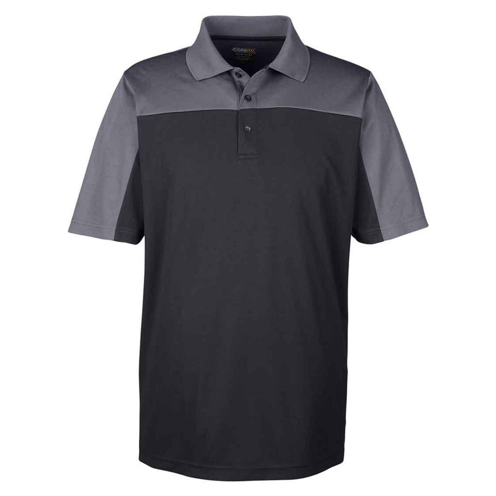 Core 365 Men's Black/Carbon Balance Colorblock Performance Pique Polo