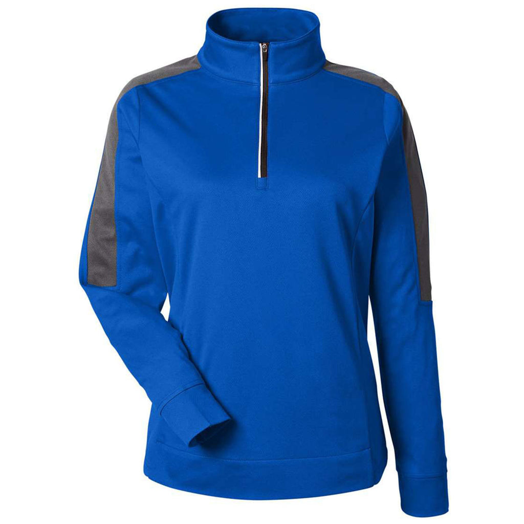 Core 365 Women's True Royal/Carbon Market Snag Protect Mesh Colorblock Quarter-Zip Pullover