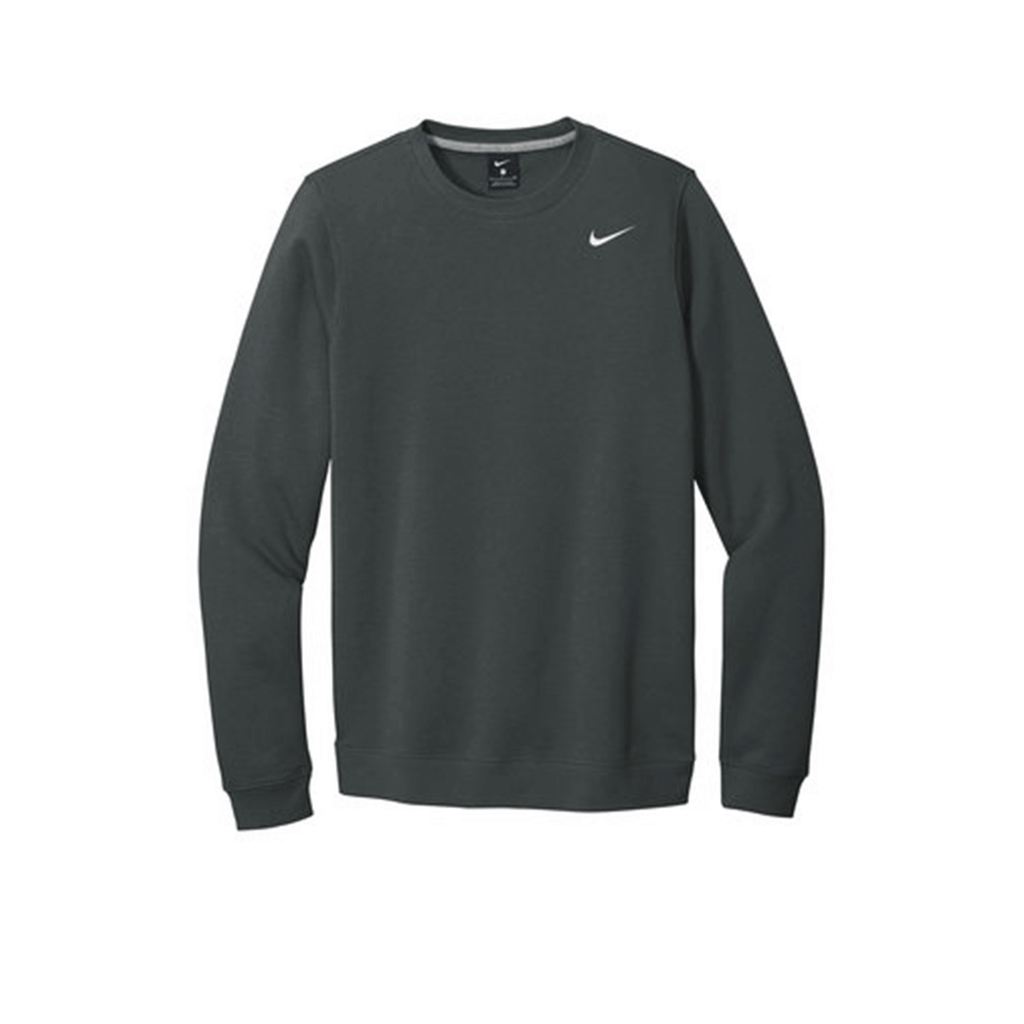 Embroidery will look great on the Nike Men's Anthracite Club Fleece Crew. The simple design of this crew does not detract from its durability and functionality. Great to wear alone or layer, the brushed back fleece is warm and comfortable for those with an active lifestyle. Add a custom logo to create athleisure wear that can help you enjoy a day at the gym or a late evening run and remain comfortable. For some, adding a company logo will create appropriate employee apparel or a great option as a gift at company outings. The Nike Swoosh is embroidered on the left chest to demonstrate quality, but your custom logo can take things to the next level.