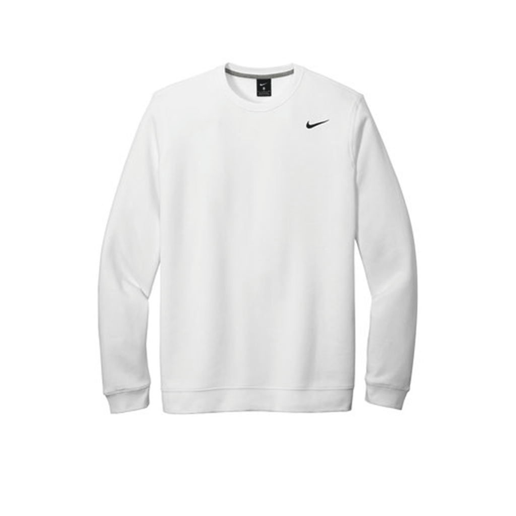 Embroidery will look great on the Nike Men's White Club Fleece Crew. The simple design of this crew does not detract from its durability and functionality. Great to wear alone or layer, the brushed back fleece is warm and comfortable for those with an active lifestyle. Add a custom logo to create athleisure wear that can help you enjoy a day at the gym or a late evening run and remain comfortable. For some, adding a company logo will create appropriate employee apparel or a great option as a gift at company outings. The Nike Swoosh is embroidered on the left chest to demonstrate quality, but your custom logo can take things to the next level.
