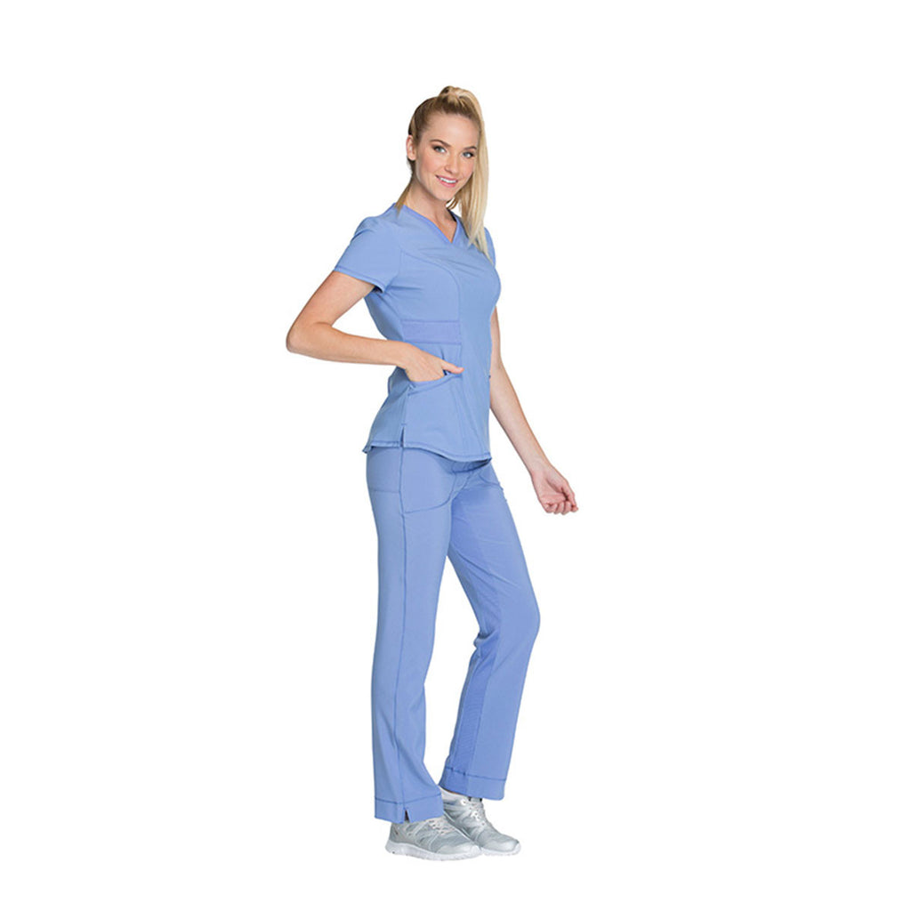 Tackle your workday in Cherokee Women's Ceil Infinity V-Neck Top for Women's featuring a rib waist inset and equipped with stretch rib knit panel for ease of movement and to keep feminine curves comfortable. Princess seams provide streamlining structure. Two patch pockets and an interior pocket are incorporated into this coat to keep your essentials safe and close at hand. Other features include pencil stitch, bungee I.D. badge loop, a shirttail hem, side vents and coverstitch detail. Customize this scrub top to make it uniquely yours with an embroidered logo for healthcare staff in your medical organization.Highlights