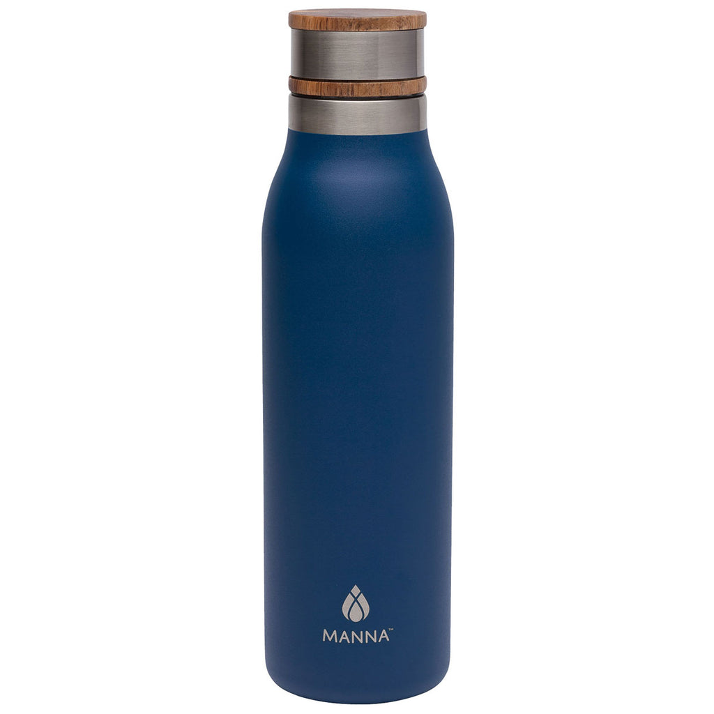 Manna Navy Ascend 18 oz. Stainless Steel Water Bottle with Acacia Lid