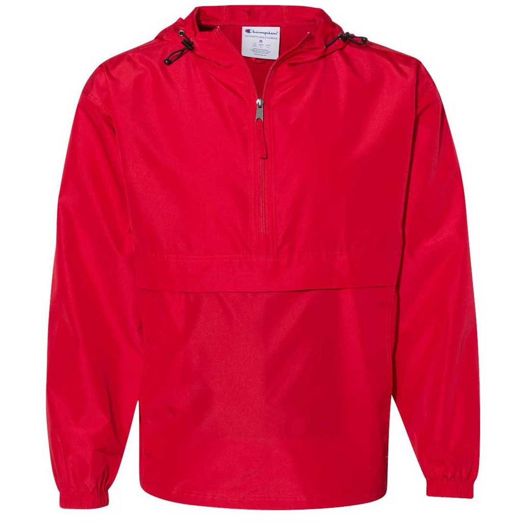 Convenience is key with the custom Champion Men's Scarlet Packable Jacket made of 100% polyester micro poplin. The wind and water resistance will come in handy when the weather takes an unexpected turn during the day. Perfect as part of employee apparel with custom embroidery added to fit your needs, this packable jacket comes with a mesh lined storage bag. The half zip hood offers an adjustable bungie cord for easy to wear comfort and the encased cuffs and waist drawcord means a great fit even when the rain hits hard. Encased elastic cuffs keep your clothing dry no matter your activity. Add a corporate logo and use this as part of athletic apparel for pregame warm-ups and rain delays.
