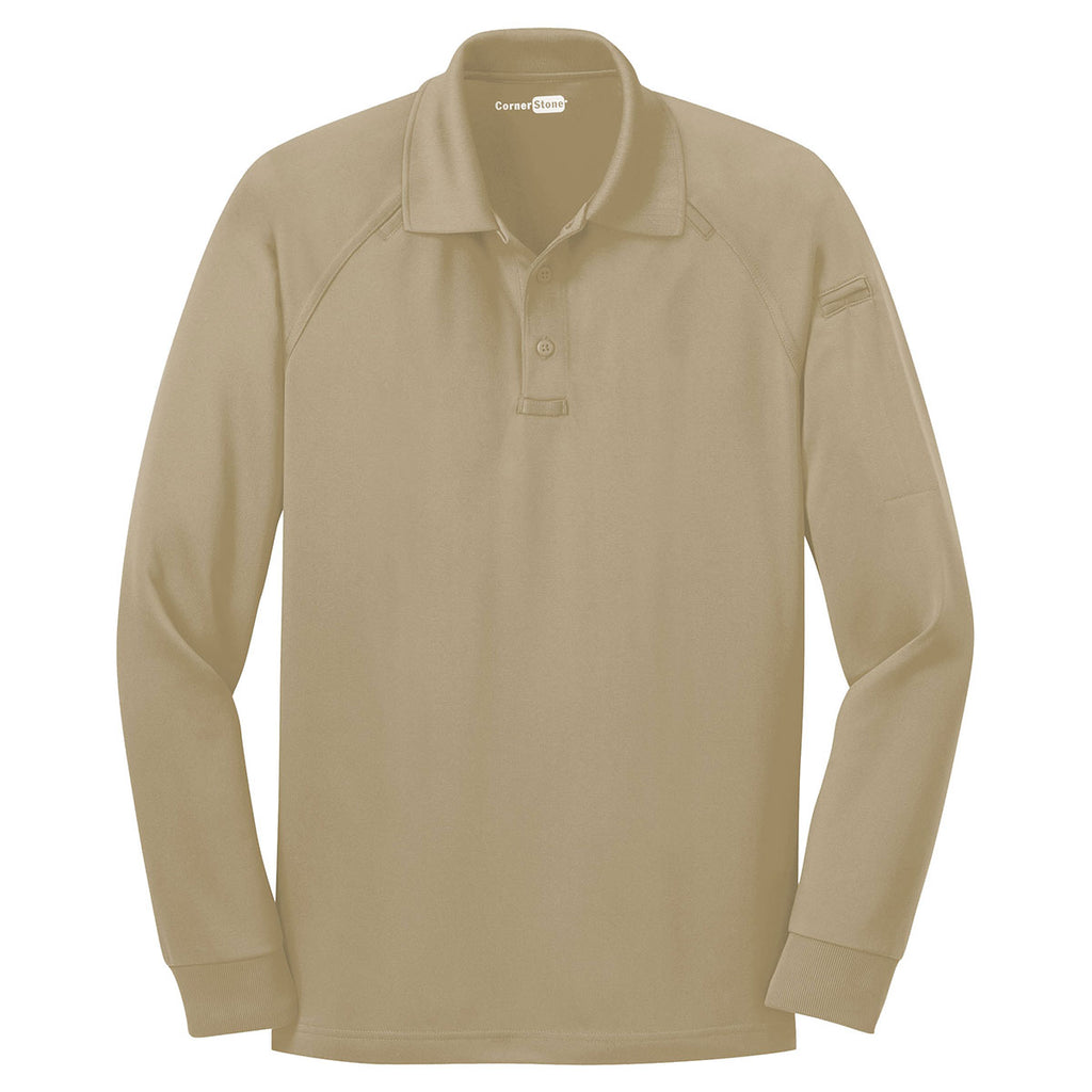 The stylish design makes the CornerStone Men's Tan Select Long Sleeve Snag-Proof Tactical Polo the perfect casual workwear for business meetings and conferences. Tactical is the keyword, as you can attach mic clips and multiple pens in the pockets. The 100% lightweight polyester never wrinkles during work or after tumbling inside of a washer and dryer. Moisture wicking polyester provides incredible breathability to keep you comfortable throughout the workday. Double-needle stitching prevents the polo from snagging on the corner of desks and file cabinets. Choose among six colors to match the personality of your workplace team.Highlights