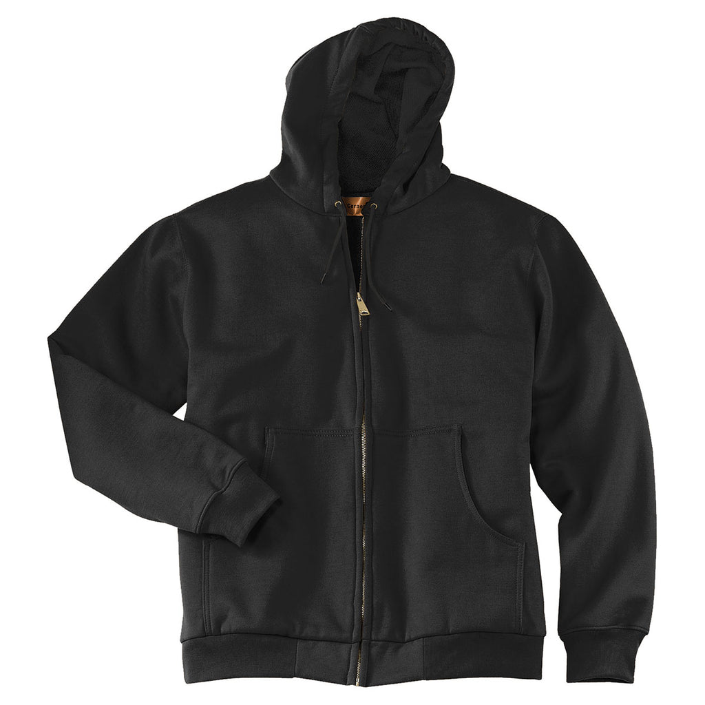 CornerStone Men's Black Heavyweight Full-Zip Hooded Sweatshirt with Thermal Lining