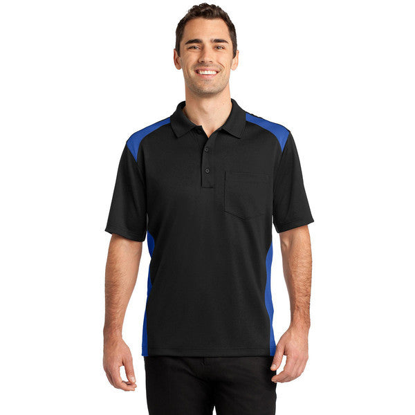 CornerStone Men's Black/Royal Select Snag-Proof Two Way Colorblock Pocket Polo