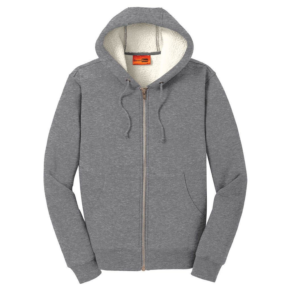 CornerStone Men's Grey Heavyweight Sherpa-Lined Hooded Fleece Jacket
