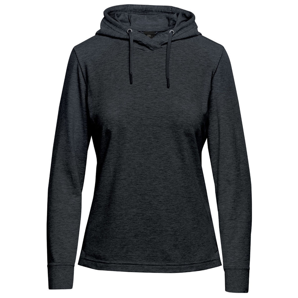 Stormtech Women's Charcoal Heather Montebello Pullover Hoodie with the embroidery of your design is the perfect way to create custom workout gear that is also fashionable and comfortable. Try a corporate logo to use at trade shows or specialty events. The hoody is a must-have for those who appreciate ease paired with style.Corresponding Men's Style: Stormtech Men's Charcoal Heather Montebello Pullover Hoody