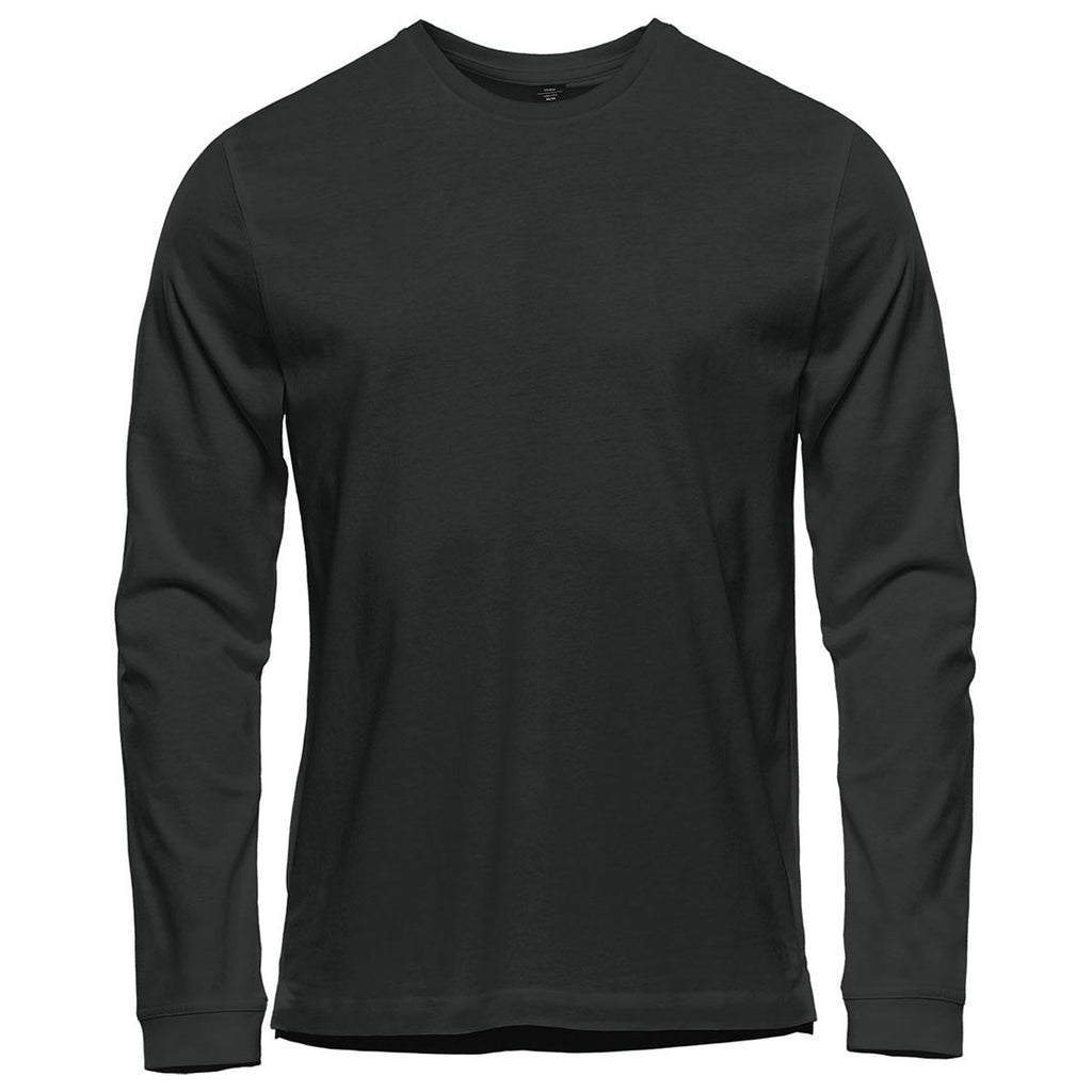 Stormtech Men's Black Equinox Long Sleeve Tee is a sustainably sourced tee that will handle your screen print with ease. The cotton-poly single jersey fabric is ultra-soft while maintaining its shape with repeated wash and wear. Created with moisture management to keep you comfortable and a UPF rating of 30+ this custom long-sleeve tee is great for working out, hanging out, and everything in between. Add a company logo to use as uniforms or employee gifts or add something custom to build your logoed apparel line. Great for trade shows and specialized events, but also wonderful for everyday wear. Place an order today for these versatile tees.Highlights
