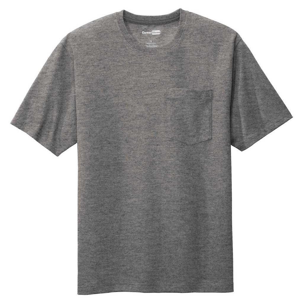 CornerStone Men's Heathered Charcoal Workwear Short Sleeve Pocket Tee
