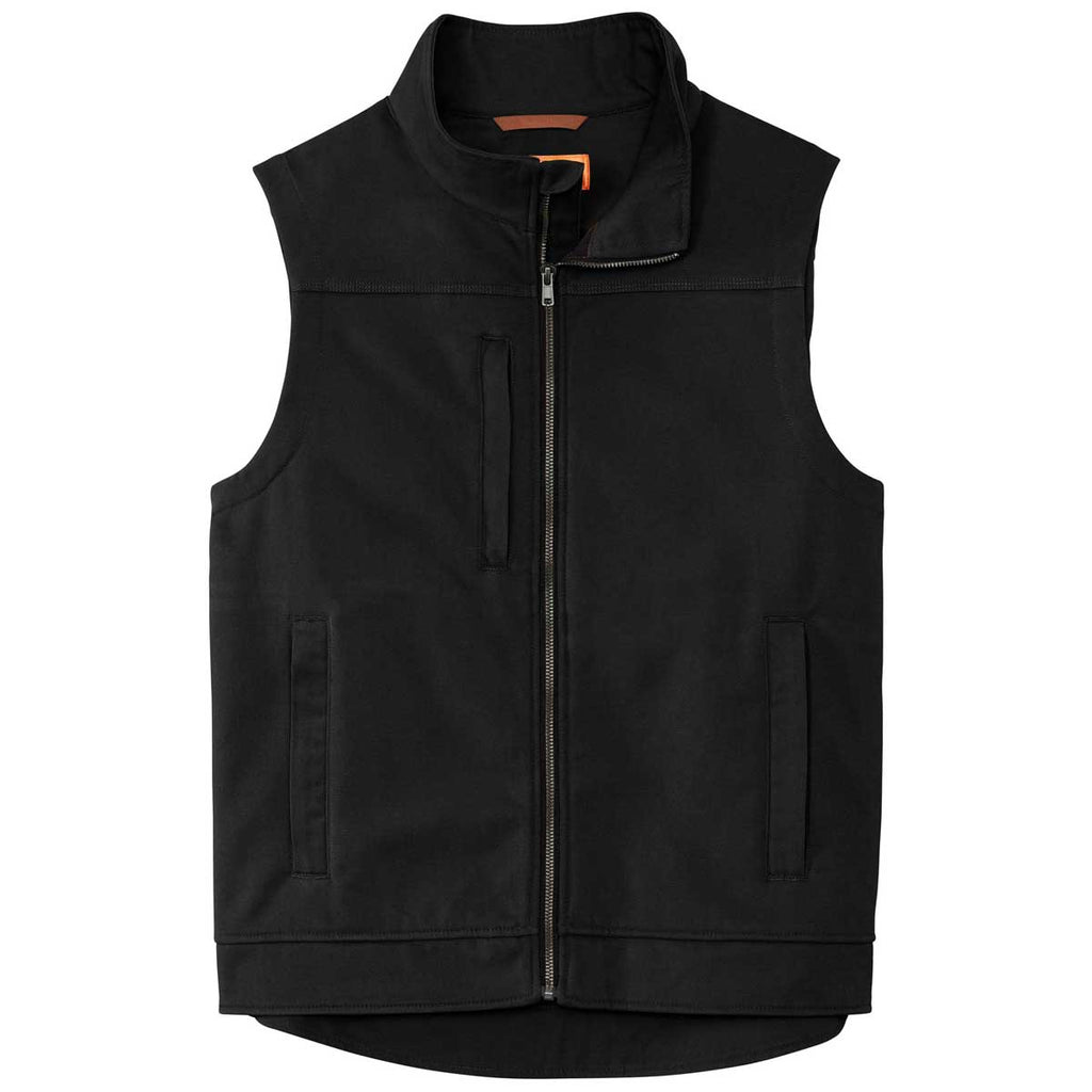 Tackle the day in a custom embroidered CornerStone Men's Black Duck Bonded Soft Shell Vest. This vest is made to work with the durable duck cloth that is both ultra-warm and water resistant. The cotton canvas shell is bonded to a film insert and polyester microfleece lining. Add a custom logo to use this as part of an employee uniform or as a gift for a special occasion. Zippered chest and hand pockets are great for small items that need to be easily accessible and three interior pockets are ideal for electronics. Choose this vest for hiking, working outdoors, or just hanging with friends. A true all around look.Highlights