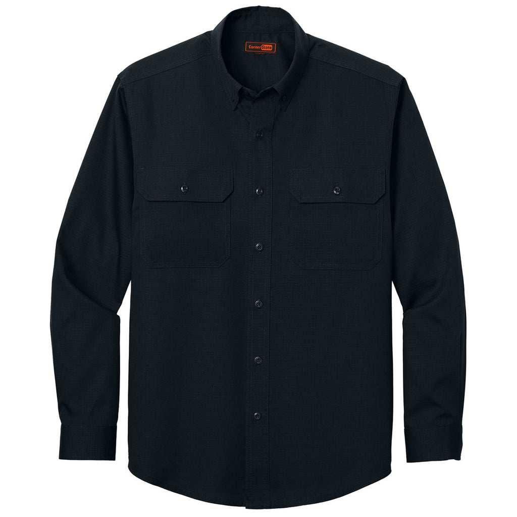 CornerStone Men's Navy Blue Long Sleeve Select Ripstop Shirt with a corporate logo creates a professional yet durable look for those with the toughest jobs. Whether a job foreman or the ones getting their hands dirty, this ripstop shirt is a must-have. Stain-release and reinforced stitching make all the difference. Place an order today.Highlights
