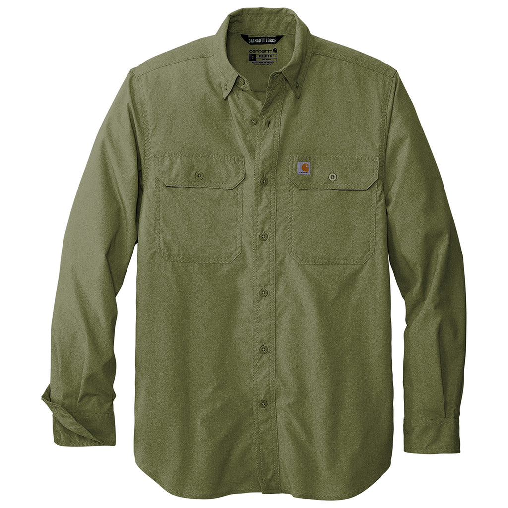 The custom Carhartt Men's Burnt Olive Force Solid Long Sleeve Shirt is the ideal promotional product and employee gift item. Add your brand logo to the shirt and you have the best way to advertise your brand quickly and easily.