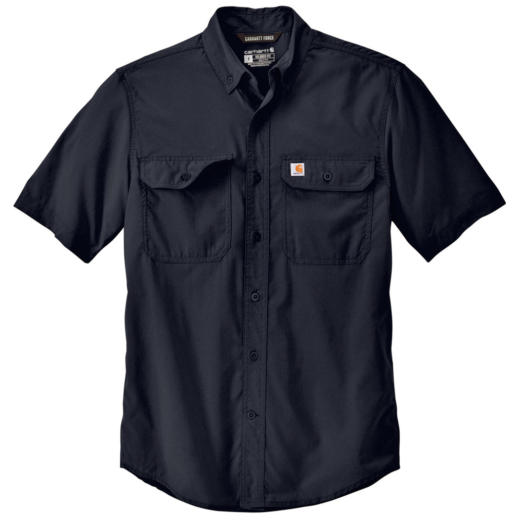 The custom logo Carhartt Men's Navy Force Solid Short Sleeve Shirt offers eye-catching appeal and an easy way to advertise your brand. Add your company logo to the shirt and hand it out at upcoming corporate events or give it to your team members as an employee gift.